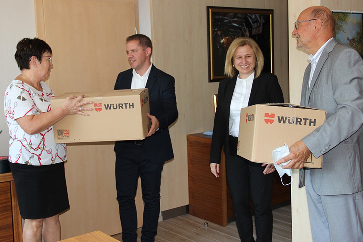 A jövőre 30 éves Reinhold és Carmen Würth Alapítvány a járványhelyzetben is szem előtt tartja a társadalmi felelősségvállalás fontosságát. Mivel a többszörösen hátrányos helyzetben lévő, otthonokban nevelkedő gyermekek hagyományos nyári üdültetése idén a koronavírus miatt elmaradt, az alapítvány kuratóriuma úgy határozott: a jelen körülményekhez alkalmazkodva is talál módot arra, hogy segítsen a leginkább rászorulókon. A Würth Shopnak helyet adó magyar városok közül első körben Szombathely részesült maszkadományban, másodikként pedig Tatabánya. Dr. Horváth Sándor, a Reinhold és Carmen Würth Alapítvány kuratóriumi elnöke, valamint Vig Richárd, a Würth Szereléstechnika Kft. marketing vezetője adta át a félmillió forint értékű egészségügyi maszkokat tartalmazó csomagokat Szücsné Posztovics Ilona polgármesternek, valamint Mecsei Ilonának, a Tatabányai Járási Egyesített Szociális Intézmények igazgatójának.
